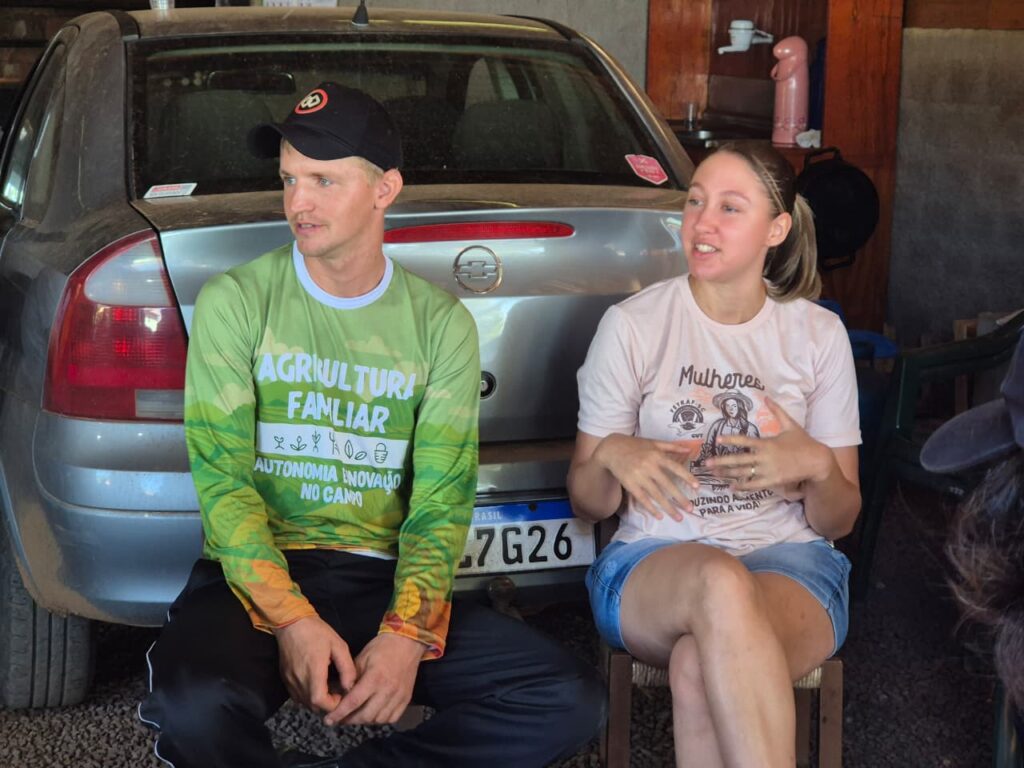 Na sequência, o grupo esteve na propriedade da família Bordignon, na Linha Encruzilhada Santa Cruz. A unidade produtiva reúne três gerações trabalhando juntas, com criação de gado de leite à base de pasto. Ao meio-dia, o almoço foi realizado no Eco Sítio Lindo, propriedade da família Cosmann, referência em produção orgânica de frutas, agroindustrialização de geleias, turismo rural e integração entre agricultura, arte e cultura.